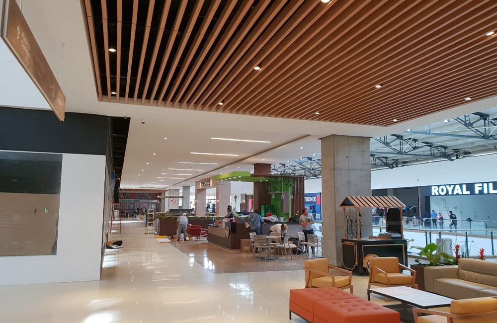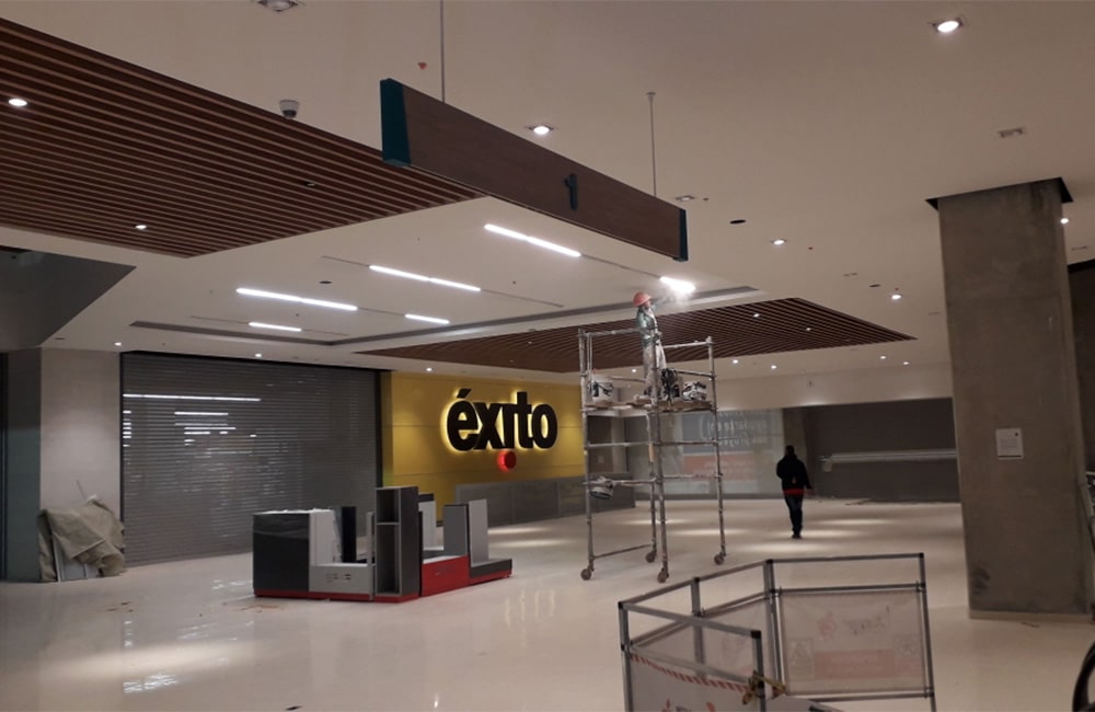 Suministro e instalación de muros y cielos rasos en drywall internos y externos de centro comercial viva tunja.